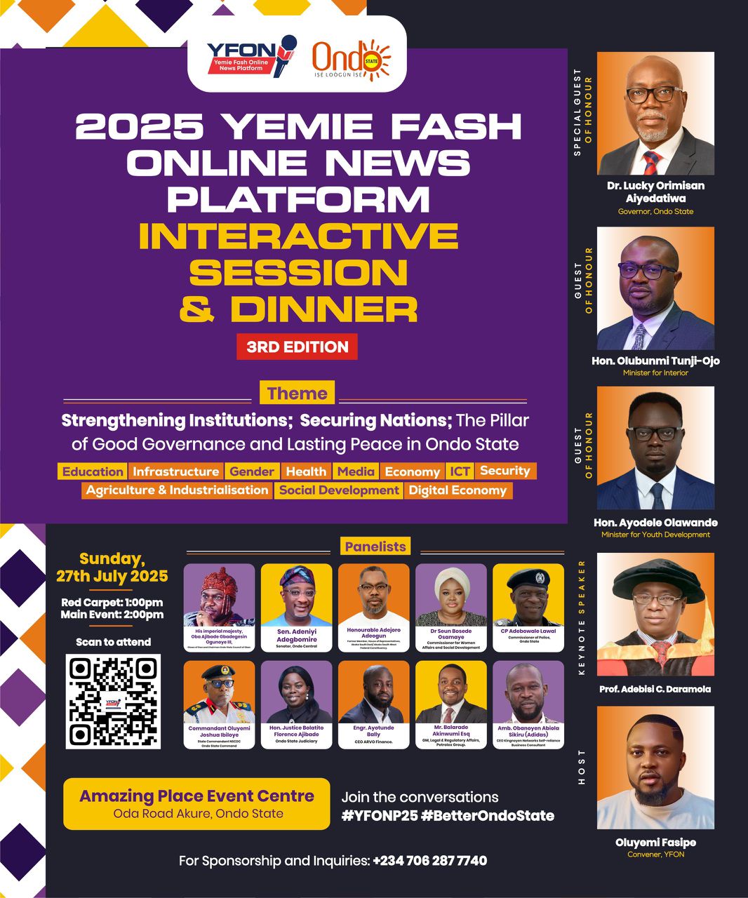 All is set for the 2025 edition of the YemieFash Online News (YFON) Interactive Session and Dinner, one of the most anticipated civic events in Ondo State, scheduled to hold on Sunday, July 27.