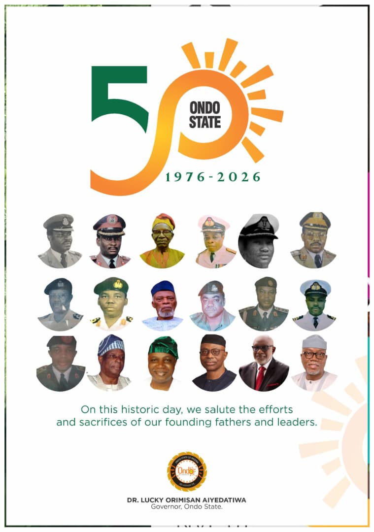 The Governor of Ondo State, Dr Lucky Orimisan Aiyedatiwa, has described the state’s 50th anniversary as a defining moment of reflection, renewal and recommitment to sustainable development, unity and good governance.