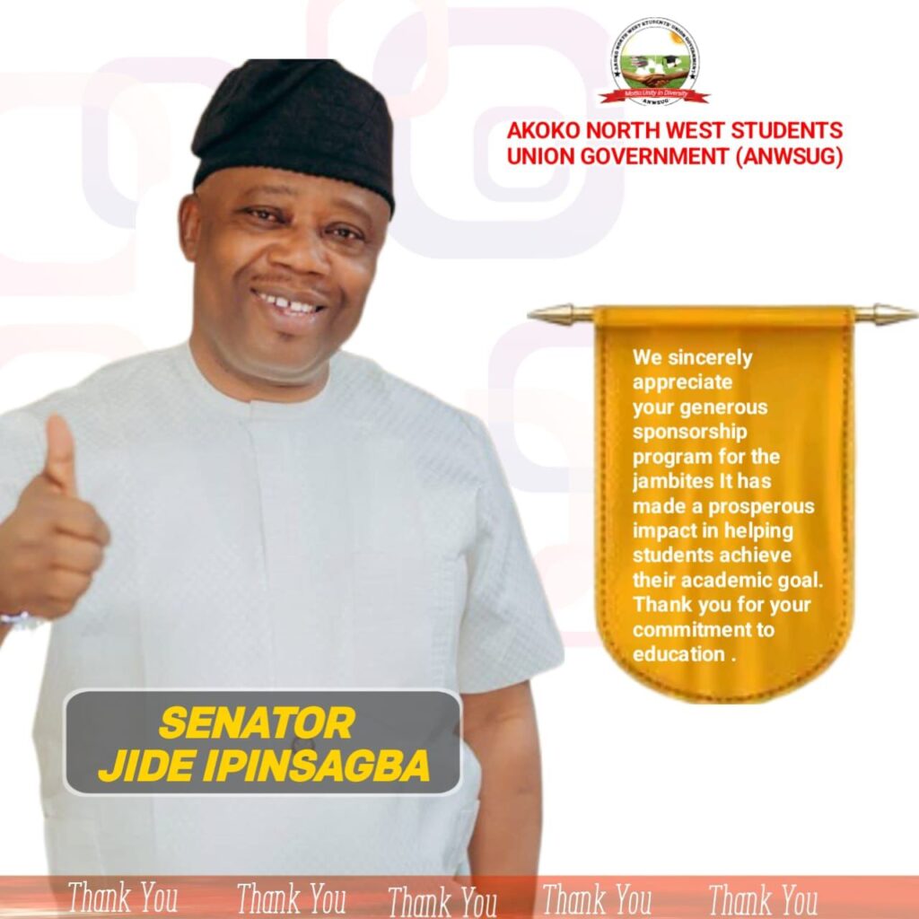 The Akoko North West Student’s Union Government (ANWSUG) has commended the Senator representing Ondo North, Olajide Ipinsagba, for providing free Joint Admissions and Matriculation Board (JAMB) registration slots to students in the area.